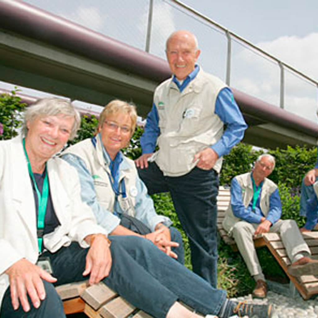 Wir Ehrenamtler sind seit der Landesgartenschau 2005 zu einer festen Gemeinschaft zusammen gewachsen. Durch unseren Einsatz im Bereich Geländeaufsicht, Führungen oder Mithilfe bei Veranstaltungen ist uns der Park ans Herz gewachsen. Was hier anstelle einer Deponie entstanden ist, ist ja auch aller Liebe wert!