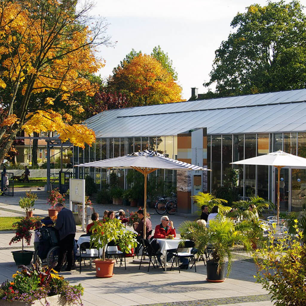 Es gibt über den gesamten Park verteilt ein vielfältiges Angebot an In- und Outdoor Gastronomie.