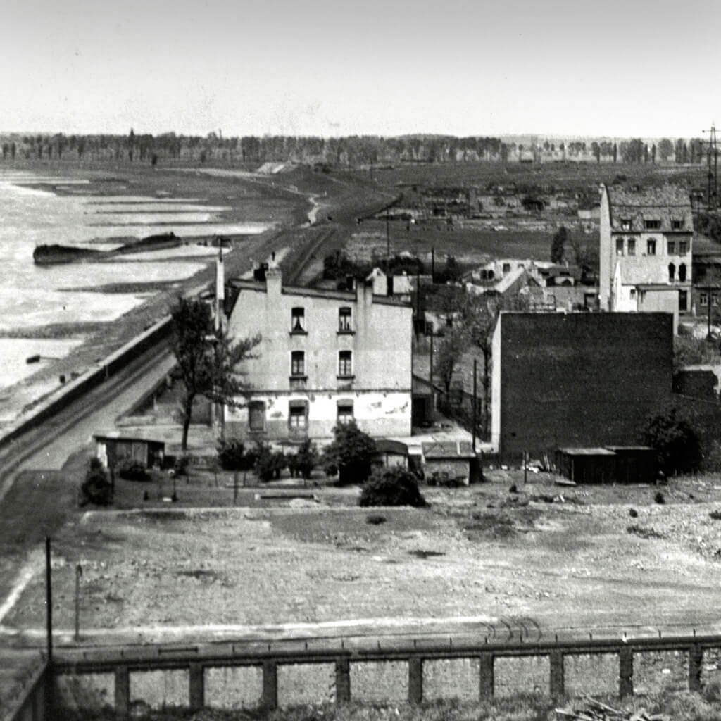Die 25 Hektar große Fläche am Rhein wurde von 1923 bis Ende der vierziger Jahre als Werksdeponie der Bayer AG genutzt. Bauschutt, hausmüllähnliche Abfälle und Chemie-Rückstände wurden abgelagert. Ca. 3 Millionen Tonnen lagern auf ihr. Die durchschnittliche Mächtigkeit der Deponie beträgt ca. 8 Meter, max. 12 Meter. Ab den 50er Jahren werden Wohnungen, der Bayer-Kanuclub und ein Restaurant auf dem Gelände errichtet. Die A1 wird gebaut, Straßen und Leitungen durchqueren es. 1985 wird die Altlast im Rahmen eines Bebauungsplanes bei einer Umweltverträglichkeitsprüfung wieder ins Bewusstsein der Öffentlichkeit gerückt.